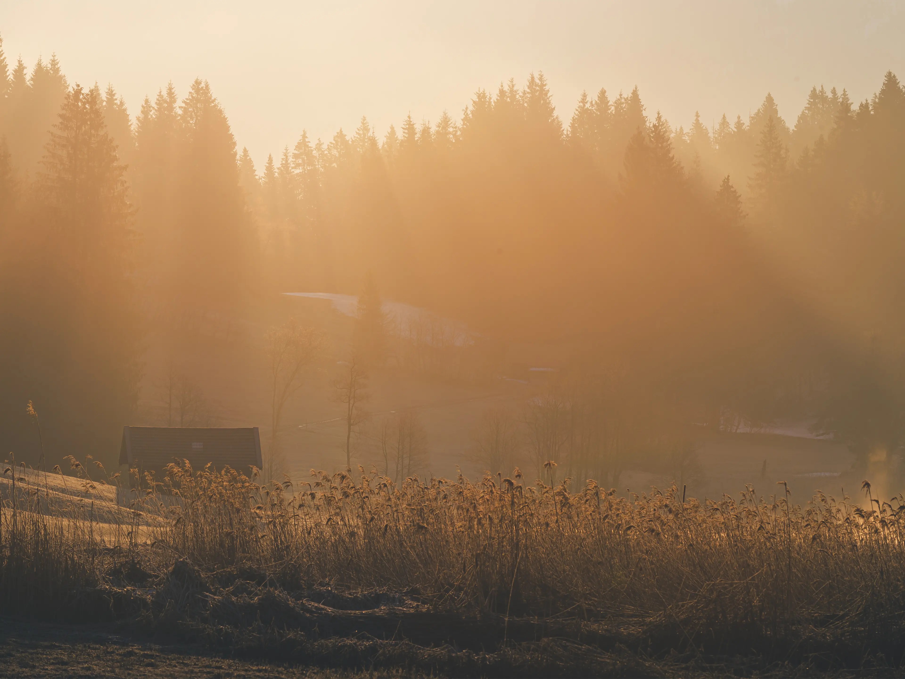 Das interessante Motiv ist sicherlich der Blick vom bekannten Fotospot oberhalb des Sees mit der kleinen Holzhütte im Vordergrund. An diesem Spot steht man, auch an nebligen Tagen, oftmals über dem Nebel. Es lässt sich wunderbar beobachten wie der Nebel über den See und die Landschaft zieht. Zudem gibt es bereits auf dem kurzen Aufstieg das ein oder andere reizvolle Motiv abzulichten.
