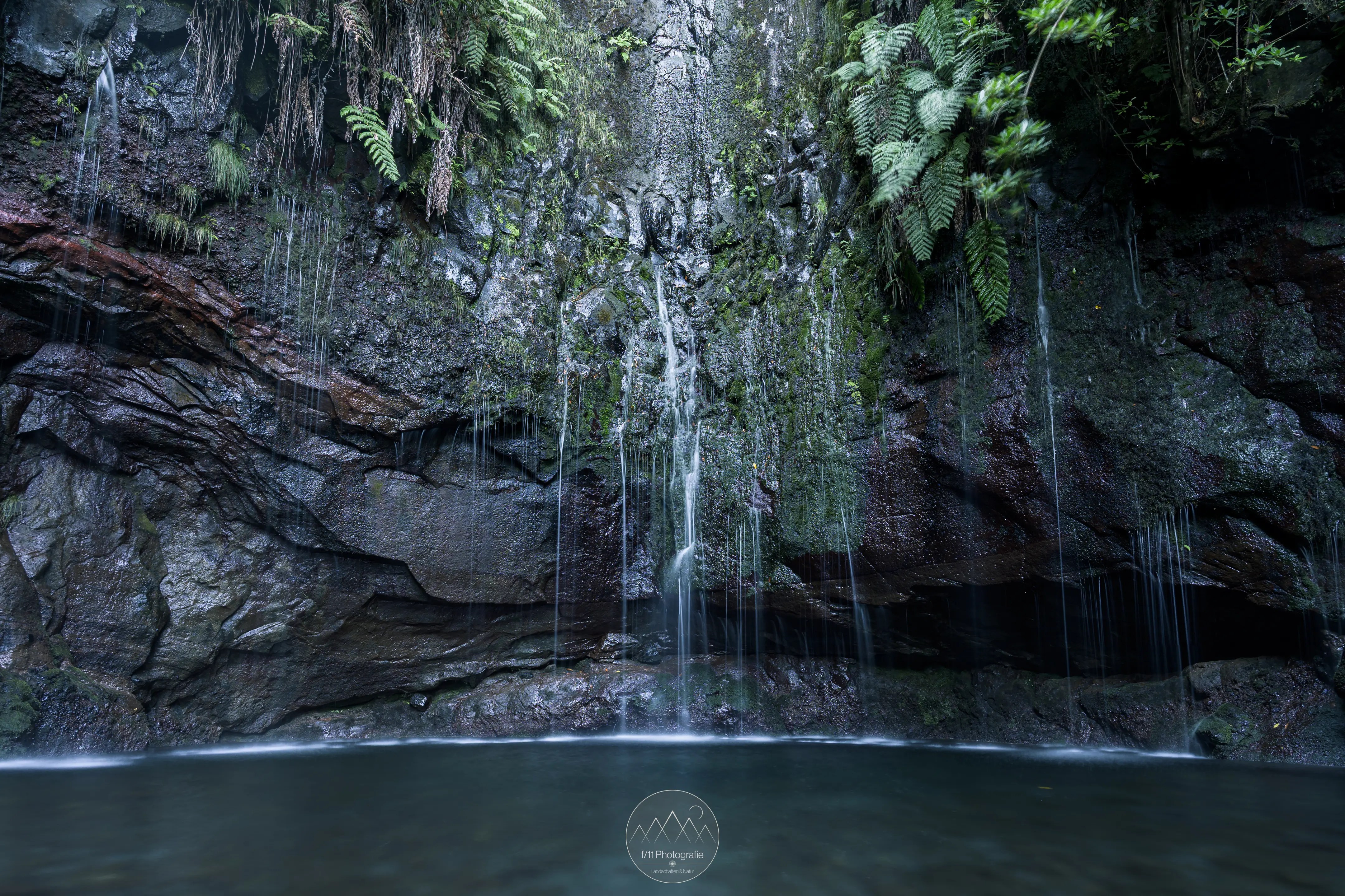 Die Wanderung startet erstmal mit Abstieg zum Forsthaus Rabacal auf der Forststraße. Anschließend geht es entlang der Levada zu den 25 Fontes. Der Weg ist recht schmal und entgegenkommenden Wanderern auszuweichen daher etwas knifflig. Mit etwas geschickt, ist es aber nicht unmöglich. Am Ende erwartet euch ein Motiv und Fotospots, welches ideal für Langzeitbelichtungen ist. Die kleinen Kaskaden des Wasserfalls wirken mit einer etwas längeren Belichtungszeit geradezu magisch. Auch empfehle ich euch hier ein Weitwinkelobjektiv. Die 24 mm meines Nikon Z 24–120 mm f/4 S waren definitiv nicht weitwinklig genug. Meine Art und Weise Panoramabilder zu fotografieren hat geholfen, aber die Ergebnisse sind mit einem passenden Weitwinkelobjektiv sicherlich besser.